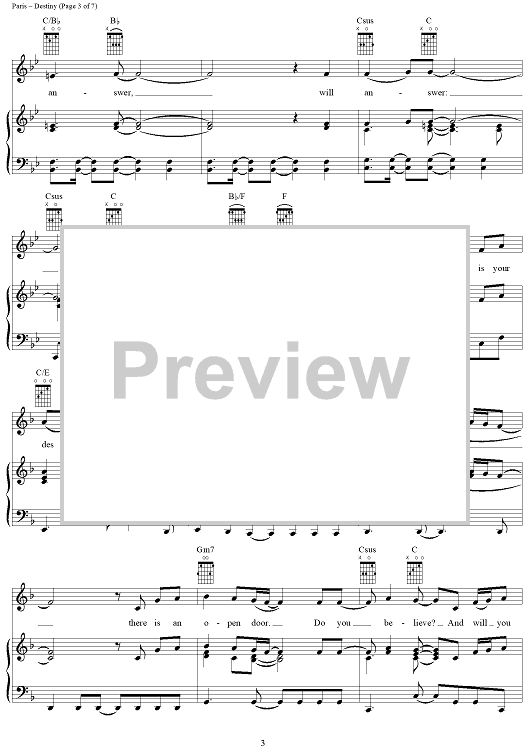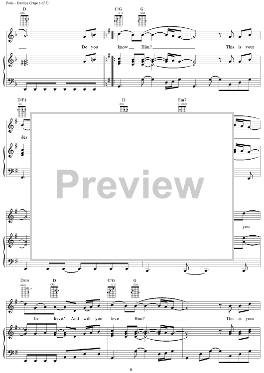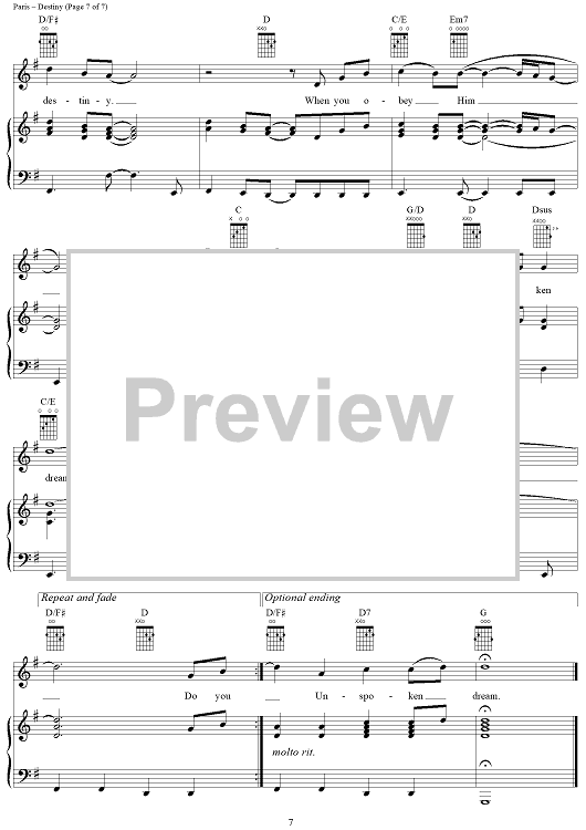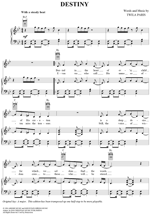 Digital Sheet Music for Destiny by Twila Paris scored for Piano/Vocal/Chords; id:367281
