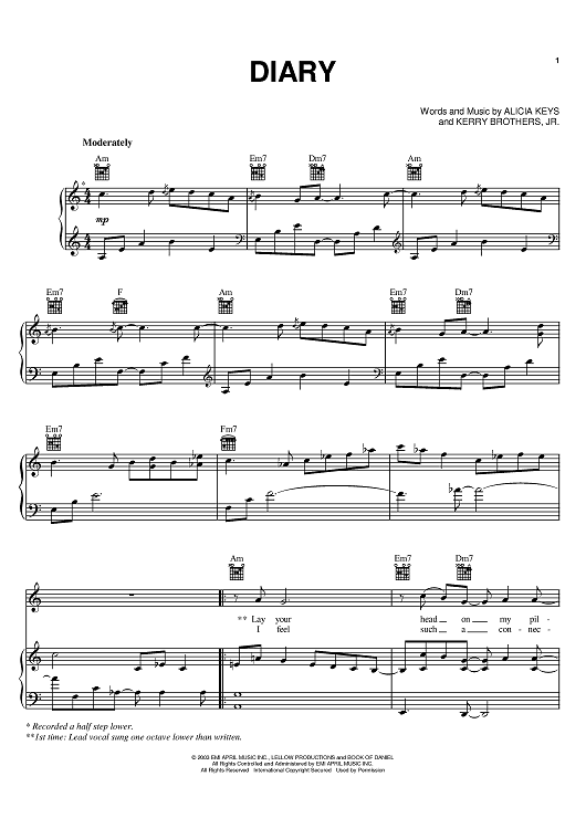 Digital Sheet Music for Diary by Alicia Keys, Kerry Brothers, Jr. scored for Piano/Vocal/Chords; id:373924