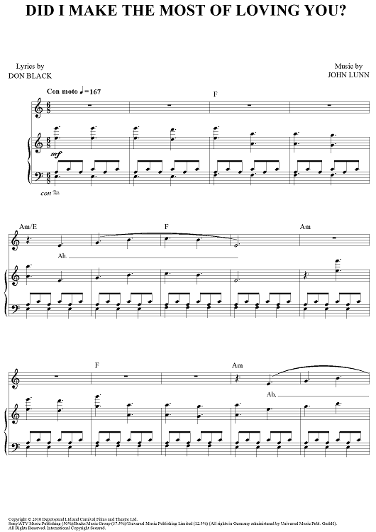 Digital Sheet Music for Did I Make the Most of Loving You? by Don Black, John Lunn scored for Piano/Vocal/Chords; id:449248