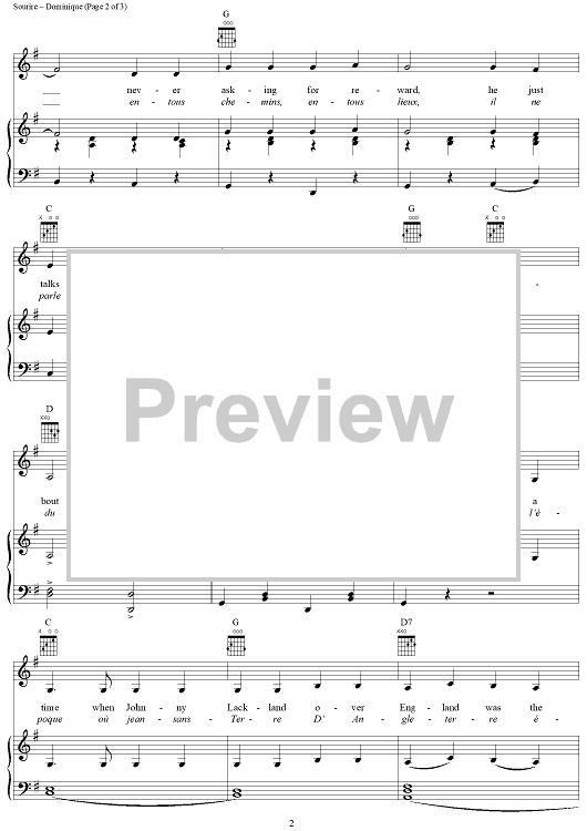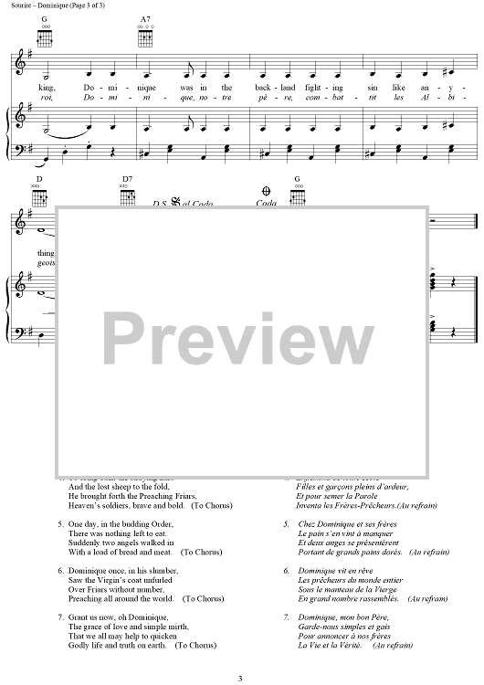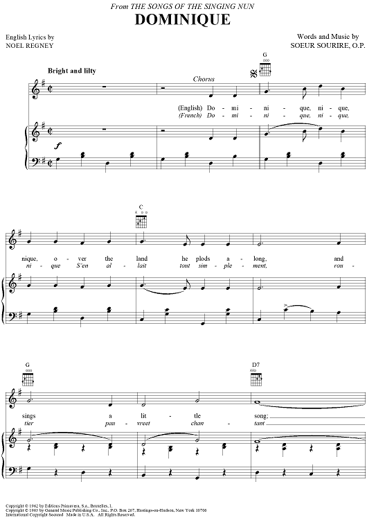 Digital Sheet Music for Dominique by Soeur Sourire, The Singing Nun scored for Piano/Vocal/Chords; id:366336