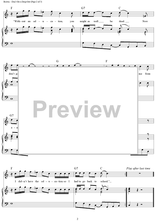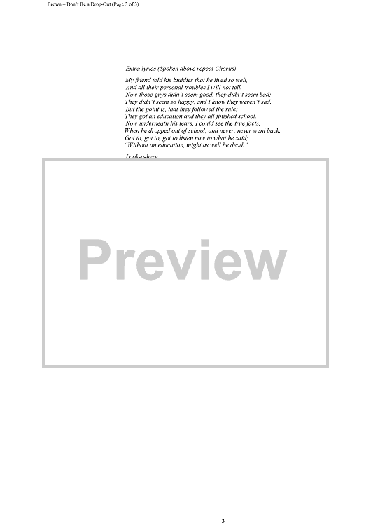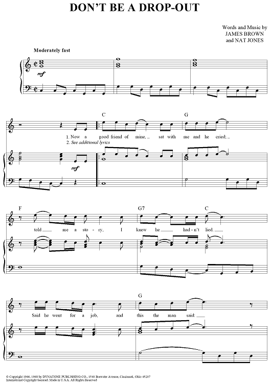 Digital Sheet Music for Don't Be a Drop-Out by James Brown, Nat Jones scored for Piano/Vocal/Chords; id:365325