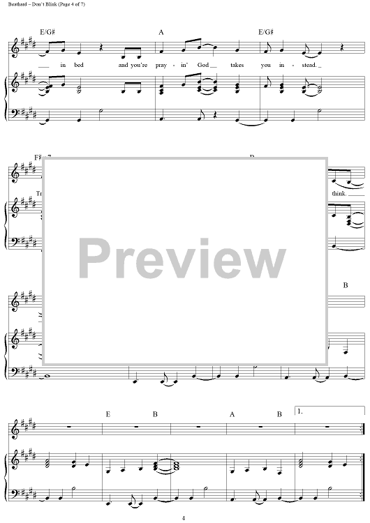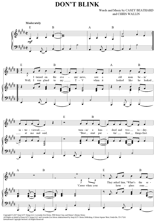 Digital Sheet Music for Don't Blink by Kenny Chesney, Chris Wallin, Casey Beathard scored for Piano/Vocal/Chords; id:366194