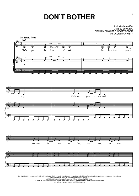 Digital Sheet Music for Don't Bother by Lauren Christy, Shakira, Graham Edwards, Scott Spock scored for Piano/Vocal/Chords; id:388052