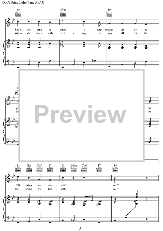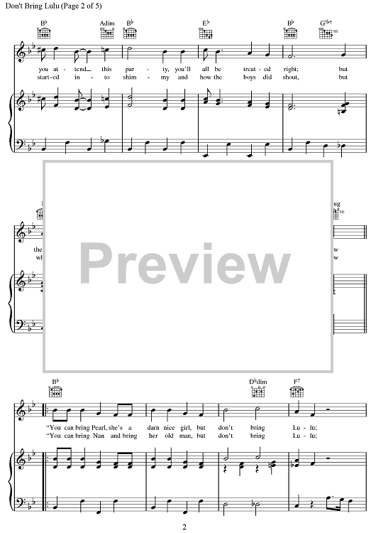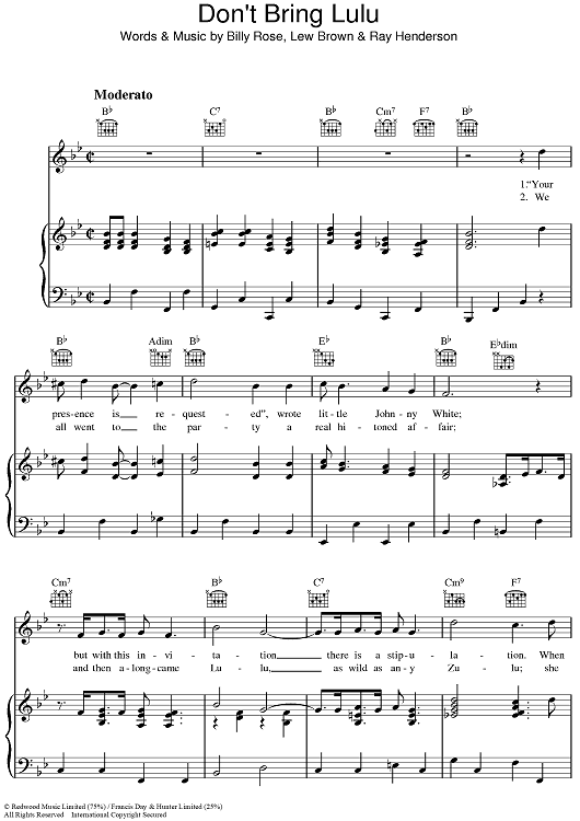 Digital Sheet Music for Don't Bring Lulu by Ray Henderson, Lew Brown, Billy Rose scored for Piano/Vocal/Chords; id:392032