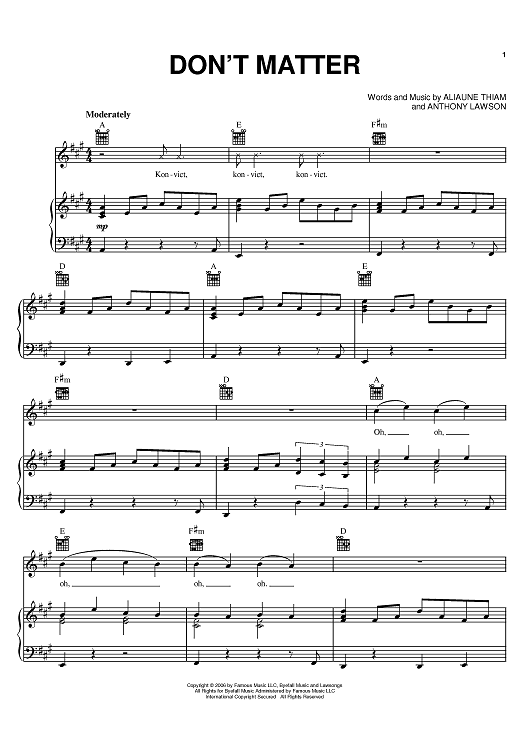 Digital Sheet Music for Don't Matter by Akon, Anthony Lawson scored for Piano/Vocal/Chords; id:396250