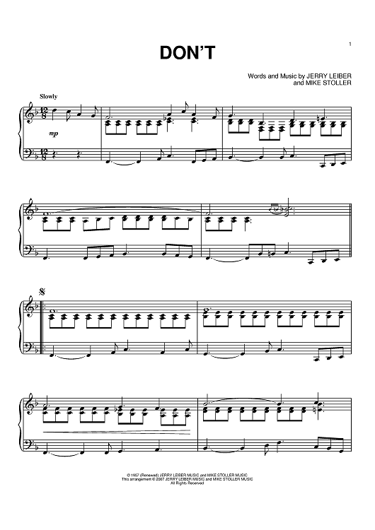 Digital Sheet Music for Don't by Elvis Presley, Jerry Leiber, Mike Stoller scored for Piano; id:397874