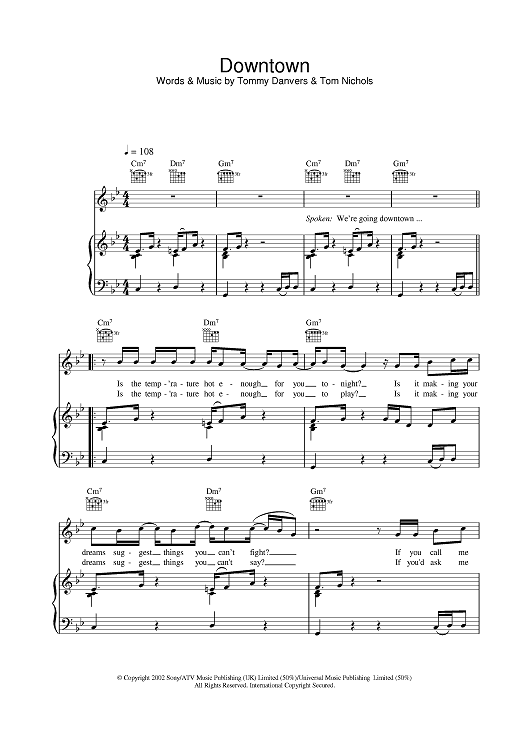 Digital Sheet Music for Downtown by Gareth Gates, Tommy Danvers, Tony Nichols scored for Piano/Vocal/Chords; id:377735