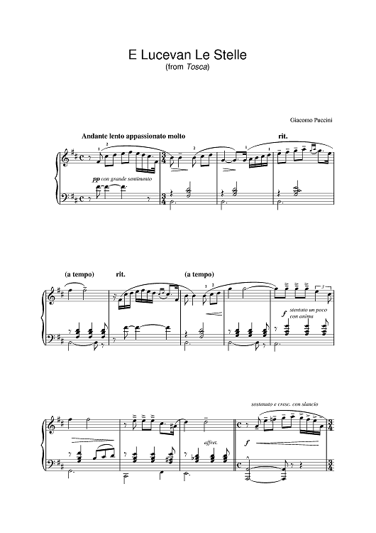 "E Lucevan Le Stelle (from Tosca)" Sheet Music by Giacomo Puccini