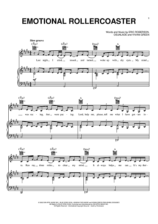 Digital Sheet Music for Emotional Rollercoaster by Vivian Green, Osunlade, Eric Roberson scored for Piano/Vocal/Chords; id:371141