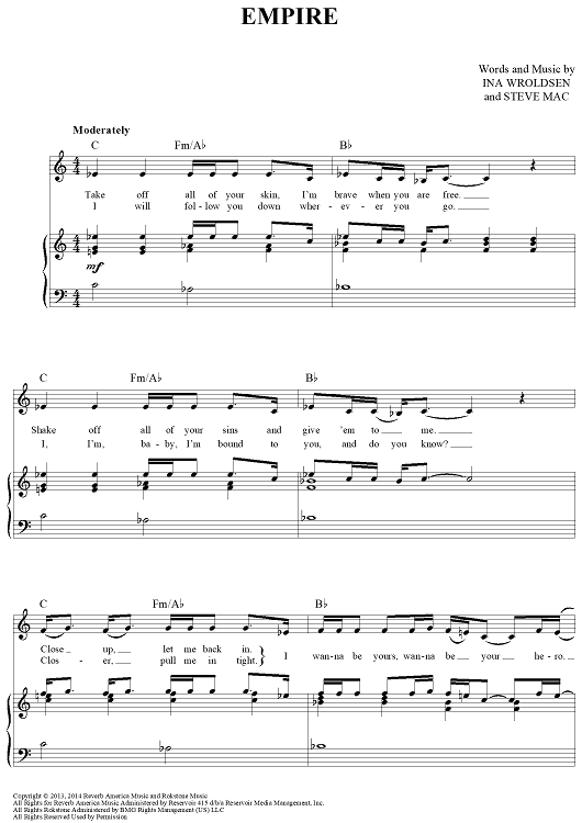 Digital Sheet Music for Empire by Steve Mac, Shakira, Ina Wroldsen scored for Piano/Vocal/Chords; id:441311