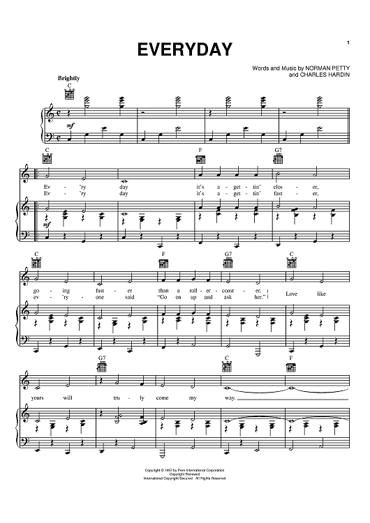 Digital Sheet Music for Everyday by Norman Petty, Charles Hardin, Buddy Holly scored for Piano/Vocal/Chords; id:368195
