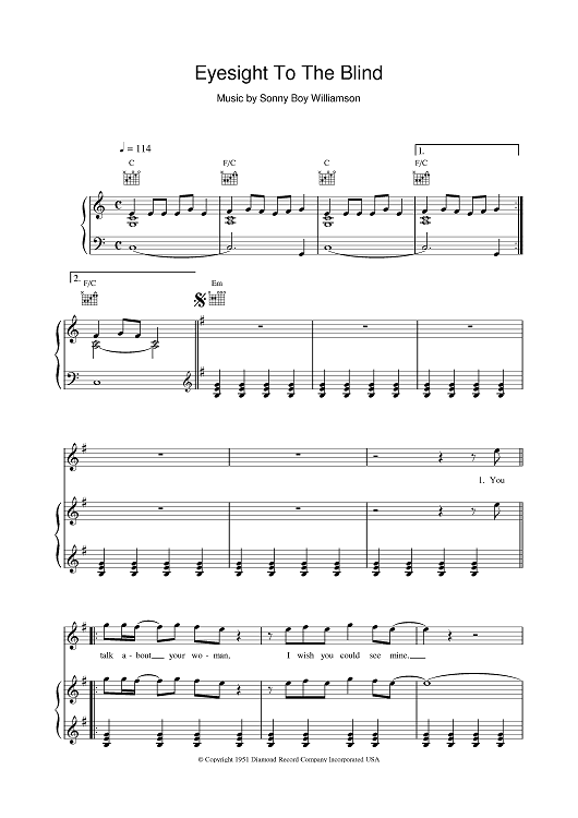"Eyesight To The Blind" Sheet Music by The Who