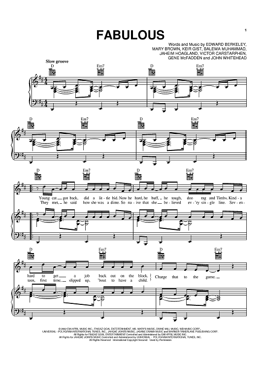 Digital Sheet Music for Fabulous by Keir Gist, Edward Berkeley, Mary Brown, Jaheim, Tha' Rayne scored for Piano/Vocal/Chords; id:370767
