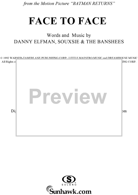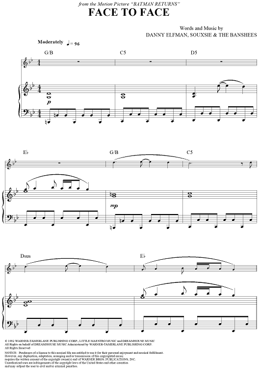 Digital Sheet Music for Face To Face - from the movie: Batman Returns by Danny Elfman, Siouxsie and the Banshees scored for Piano Accompaniment; id:270492