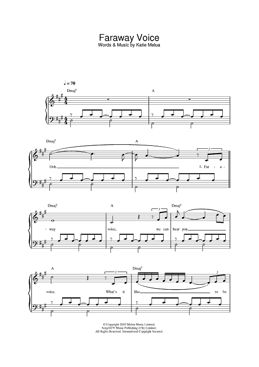 Digital Sheet Music for Faraway Voice by Katie Melua scored for Piano; id:378403