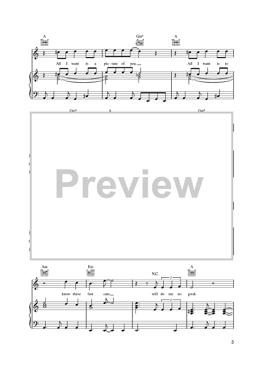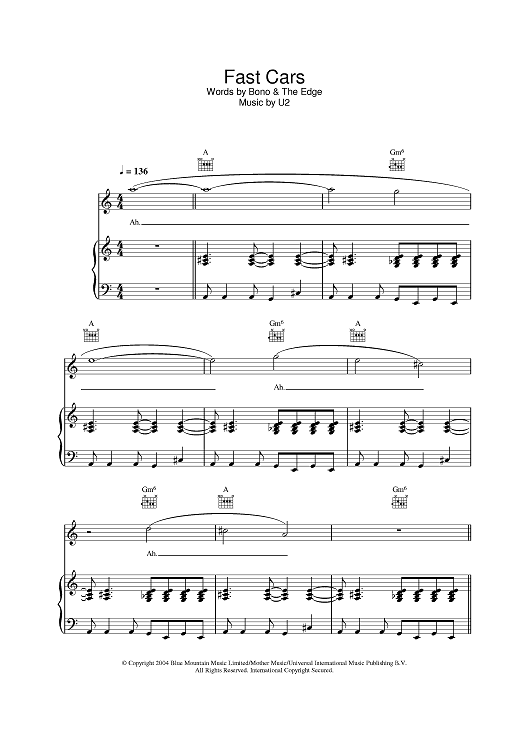 Digital Sheet Music for Fast Cars by U2, Bono, The Edge scored for Piano/Vocal/Chords; id:381689