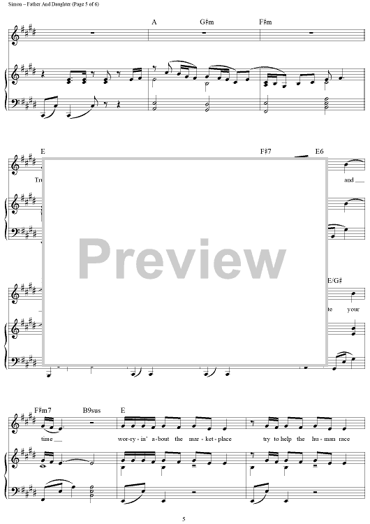 Digital Sheet Music for Father and Daughter by Paul Simon scored for Piano/Vocal/Chords; id:459491