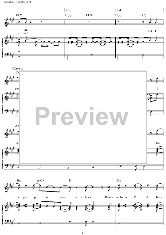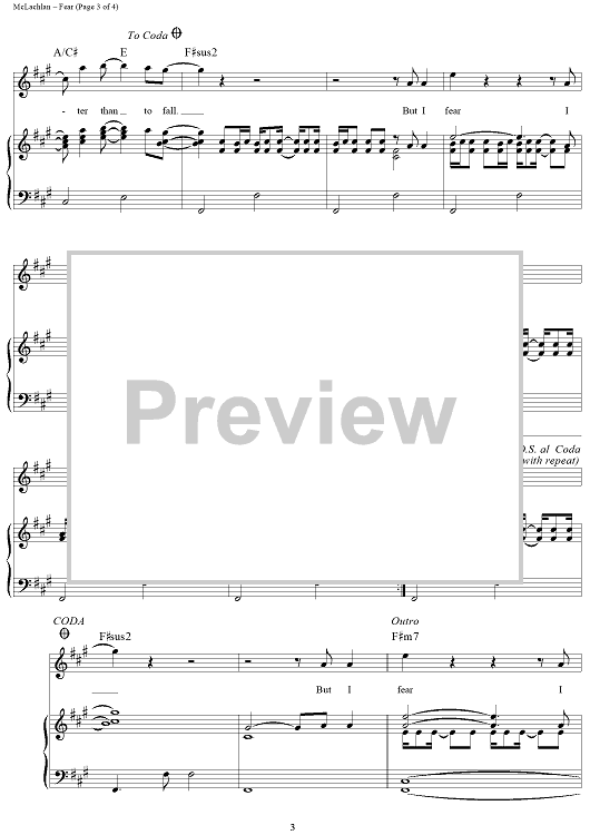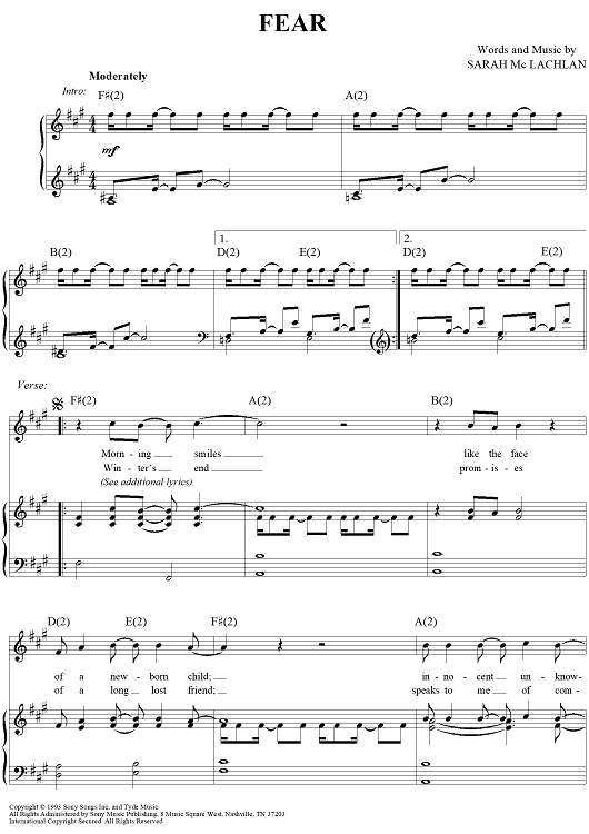 Digital Sheet Music for Fear by Sarah McLachlan scored for Piano/Vocal/Chords; id:365442