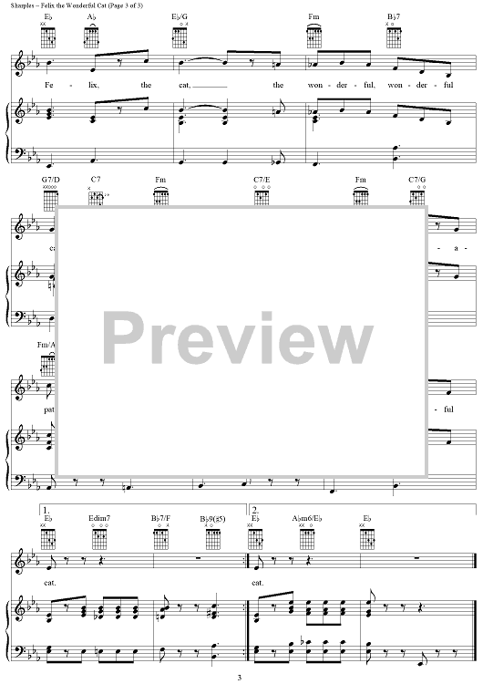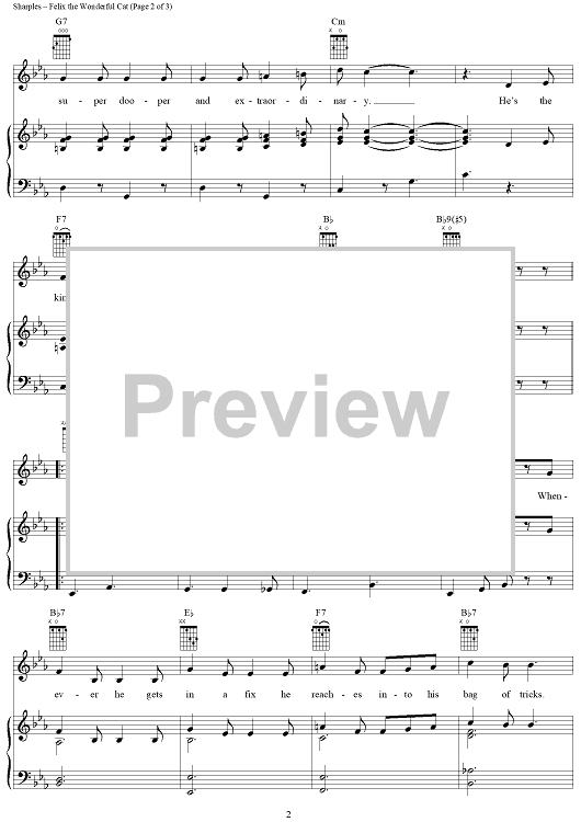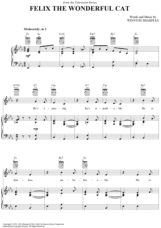 Digital Sheet Music for Felix The Wonderful Cat by Winston Sharples scored for Piano/Vocal/Chords; id:368970
