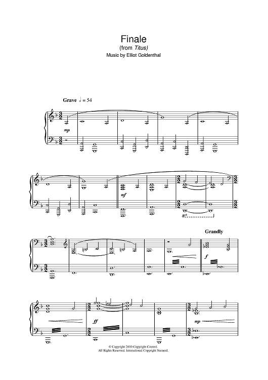 Digital Sheet Music for Finale (from Titus) by Elliot Goldenthal scored for Piano; id:395940