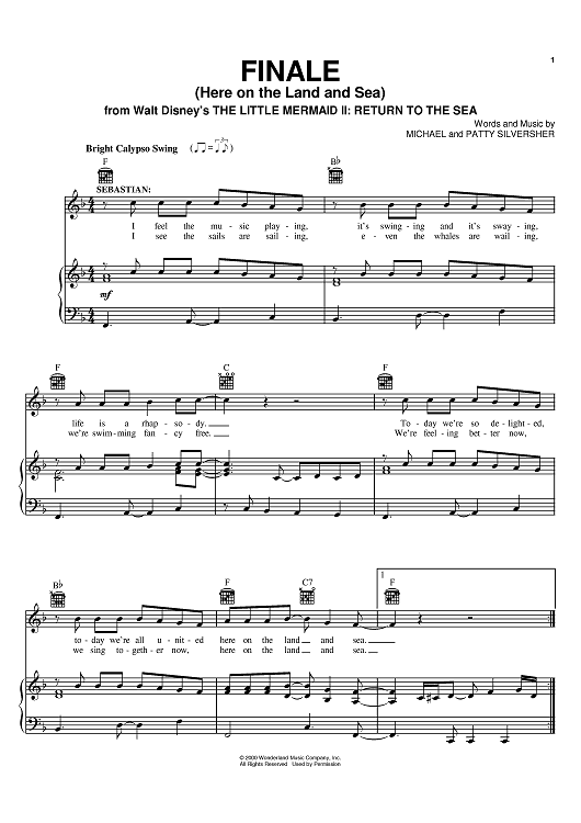 Digital Sheet Music for Finale (Here On The Land And Sea) by Jodi Benson, Michael Silversher, Patty Silversher scored for Piano/Vocal/Chords; id:374740
