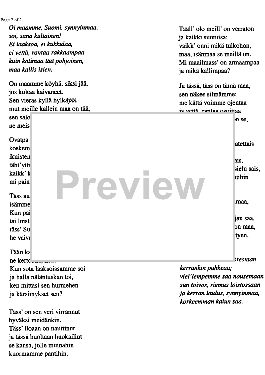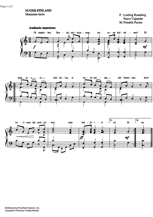 "Finland - Maamme - laulu" Sheet Music by Frederik Pacius