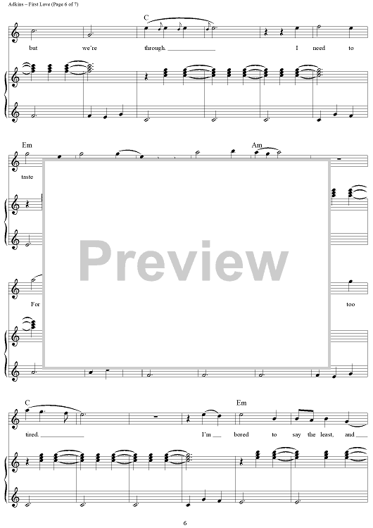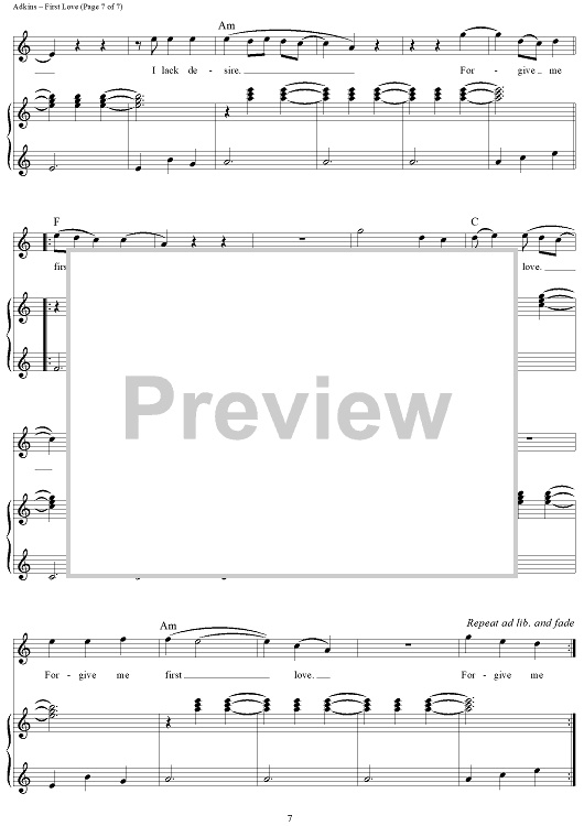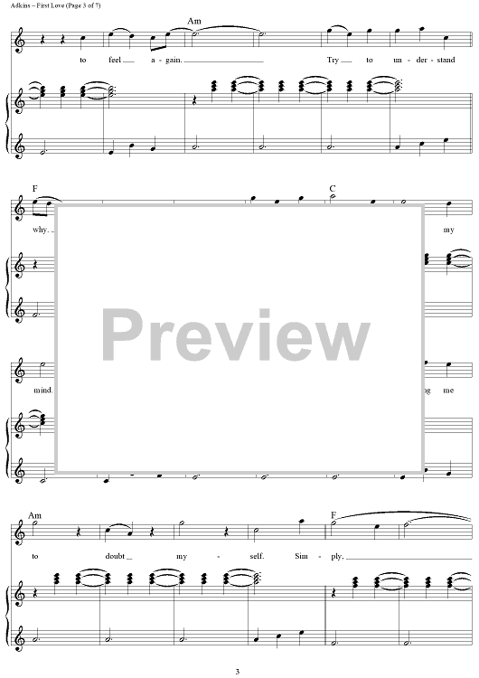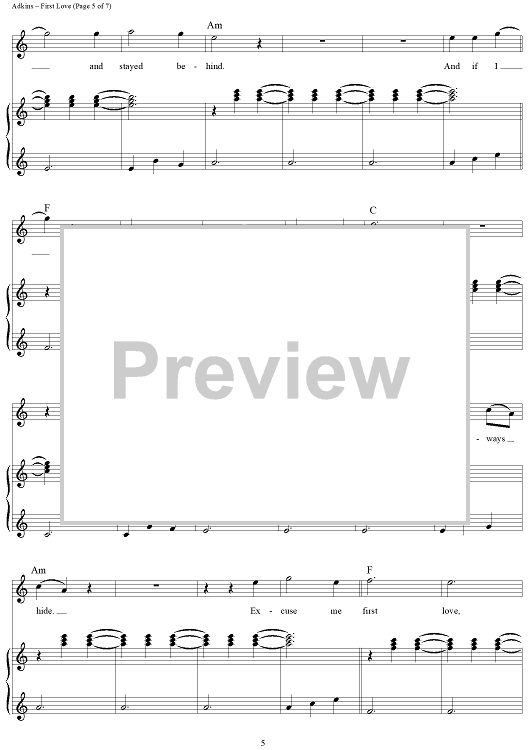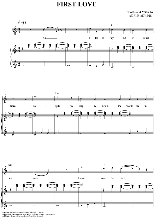 Digital Sheet Music for First Love by Adele Adkins scored for Piano/Vocal/Chords; id:418653
