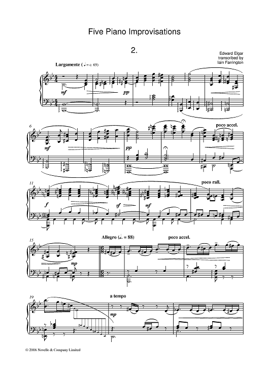 "Five Piano Improvisations: 2. Largamente" Sheet Music by Edward Elgar