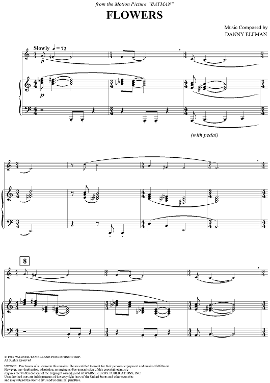 Digital Sheet Music for Flowers - from the movie "Batman" by Danny Elfman scored for Piano Accompaniment; id:270485