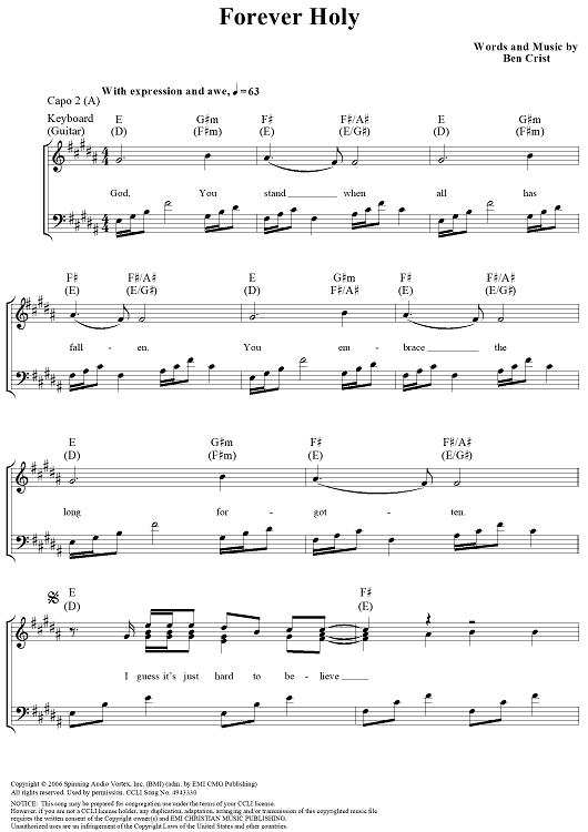 Digital Sheet Music for Forever Holy by Ben Crist scored for Piano/Vocal/Chords; id:365443