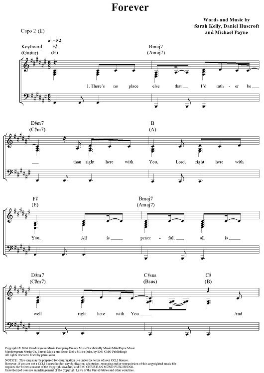 Digital Sheet Music for Forever by Sarah Kelly, Daniel Huscroft, Michael Payne scored for Piano/Vocal/Chords; id:320936