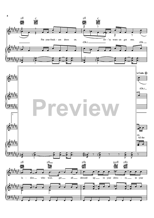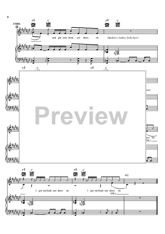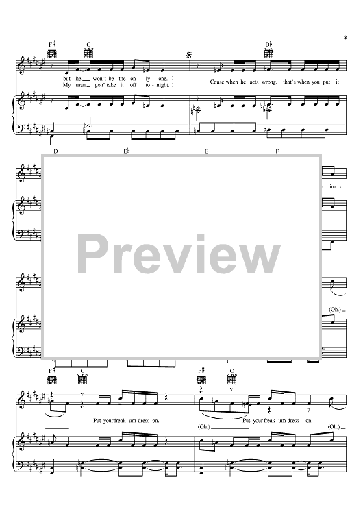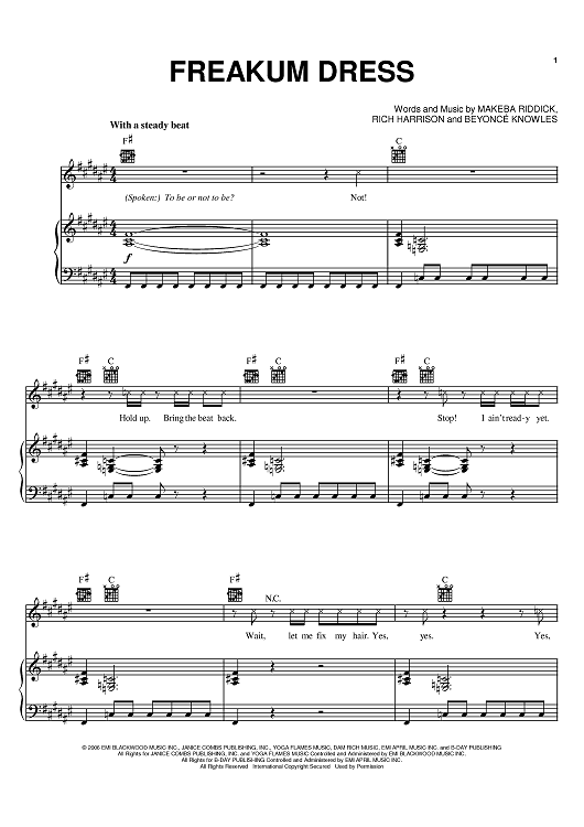 Digital Sheet Music for Freakum Dress by Beyonce, Rich Harrison, Makeba Riddick scored for Piano/Vocal/Chords; id:396324