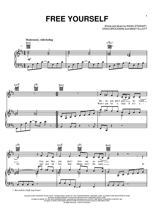 Digital Sheet Music for Free Yourself by Missy Elliott, Fantasia, Nisan Stewart, Craig Brockman scored for Piano/Vocal/Chords; id:384770