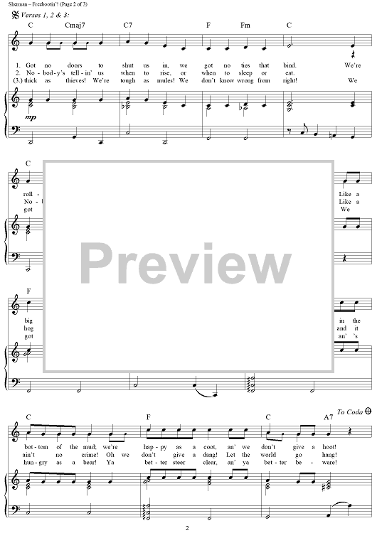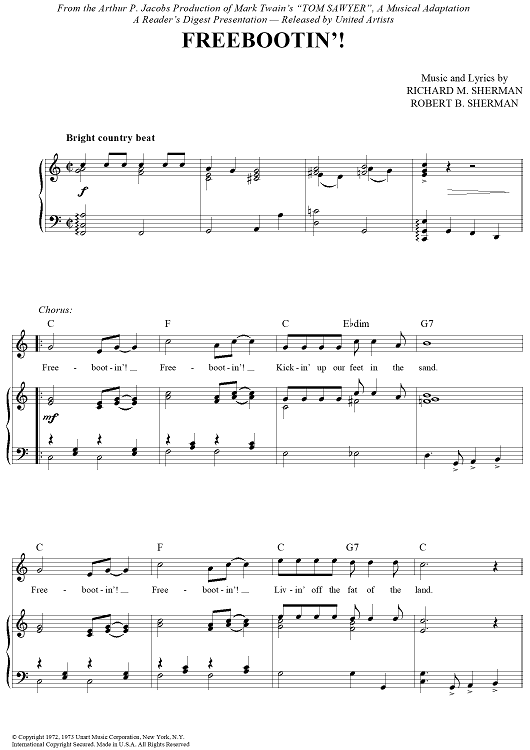 Digital Sheet Music for Freebootin'! by Richard M. Sherman, Robert B. Sherman scored for Piano/Vocal/Chords; id:366131