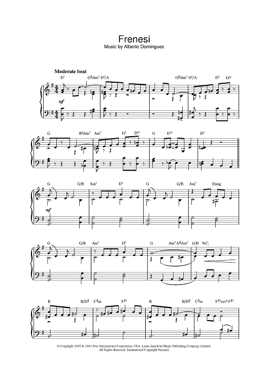 Digital Sheet Music for Frenesi by Alberto Dominguez scored for Piano; id:377965
