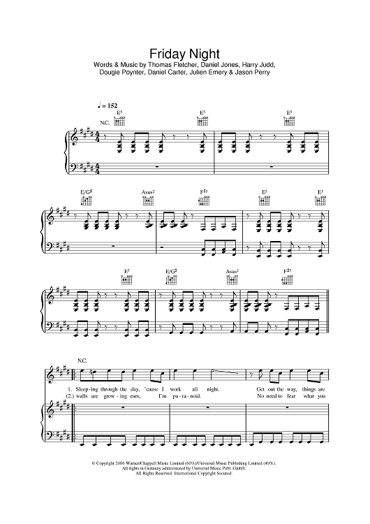 Digital Sheet Music for Friday Night by Daniel Jones, Jason Perry, Tom Fletcher, McFly, Daniel Carter, Julien Emery, Harry Judd, Dougie Poynter scored for Piano/Vocal/Chords; id:395723