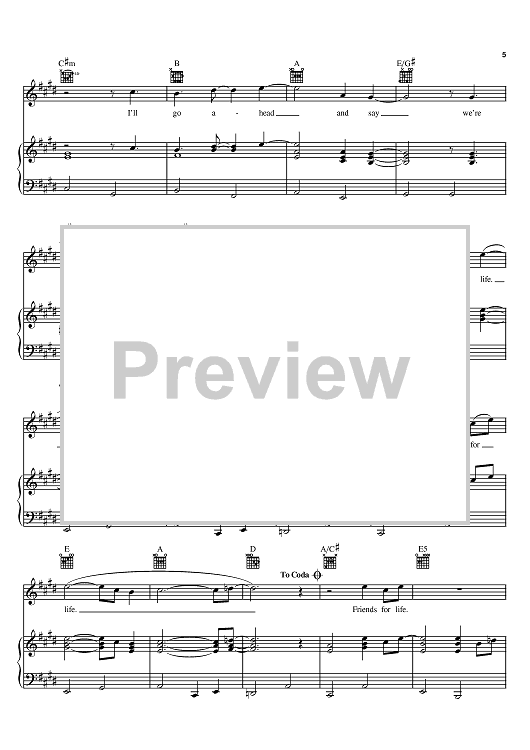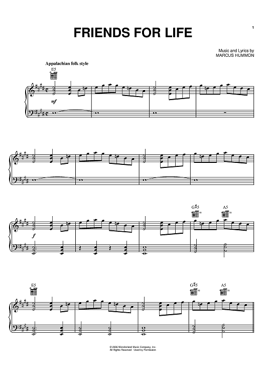Digital Sheet Music for Friends For Life by Marcus Hummon, One Flew South scored for Piano/Vocal/Chords; id:395513