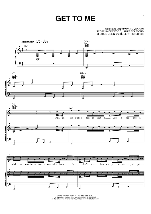 Digital Sheet Music for Get To Me by Scott Underwood, Pat Monahan, Train, James Stafford scored for Piano/Vocal/Chords; id:372493