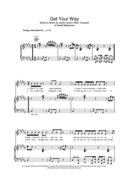 Digital Sheet Music for Get Your Way by Allen Toussaint, Jamie Cullum, Daniel Nakamura scored for Piano/Vocal/Chords; id:396215