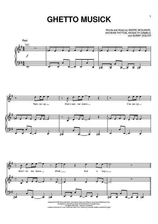 Digital Sheet Music for Ghetto Musick by André 3000, Big Boi, OutKast, Kenneth Gamble scored for Piano/Vocal/Chords; id:375078
