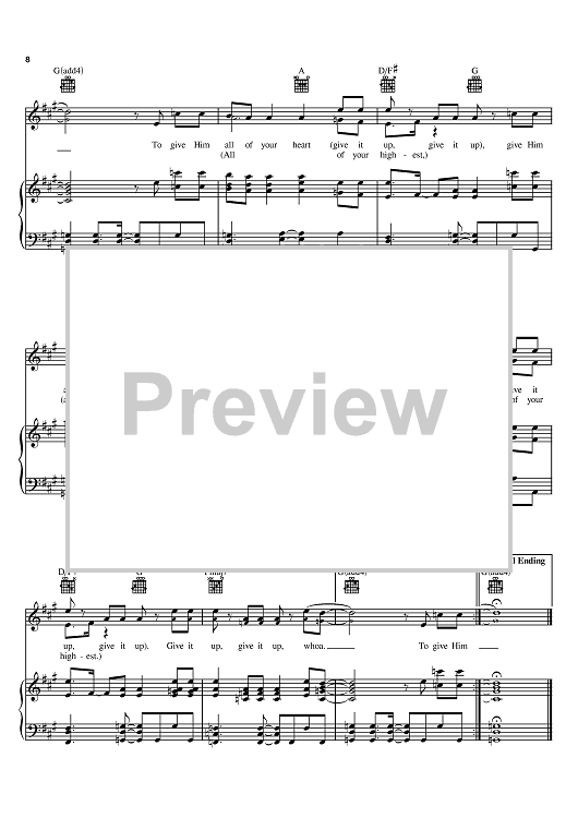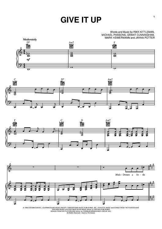 Digital Sheet Music for Give It Up by Janna Potter, Grant Cunningham, Mark Heimermann, Avalon scored for Piano/Vocal/Chords; id:371118