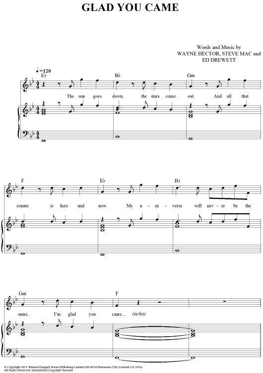 Digital Sheet Music for Glad You Came by Steve Mac, Wayne Hector, The Wanted, Ed Drewett scored for Piano/Vocal/Chords; id:429721