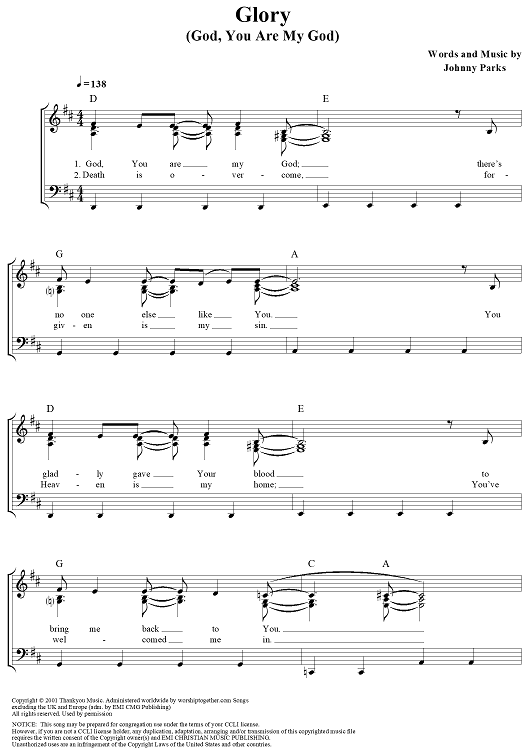 Digital Sheet Music for Glory (God, You Are My God) by Johnny Parks scored for Piano/Vocal/Chords; id:320948