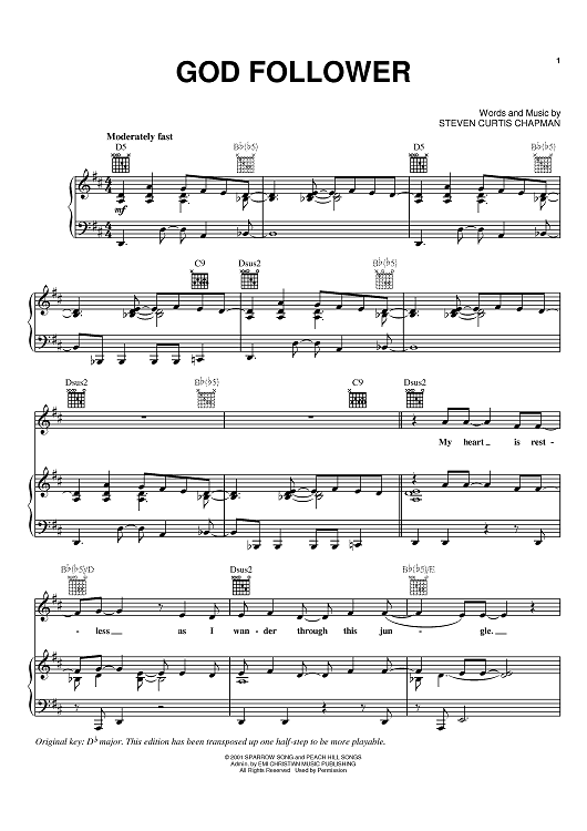 Digital Sheet Music for God Follower by Steven Curtis Chapman scored for Piano/Vocal/Chords; id:368871