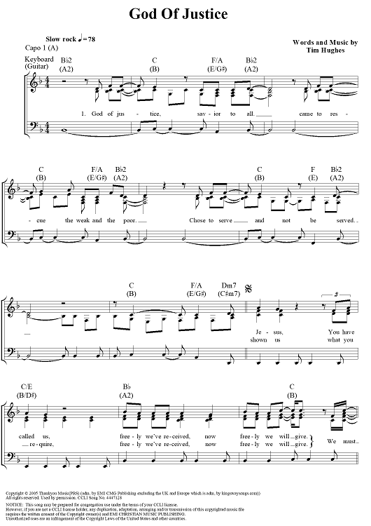 Digital Sheet Music for God of Justice by Tim Hughes scored for Piano/Vocal/Chords; id:360935