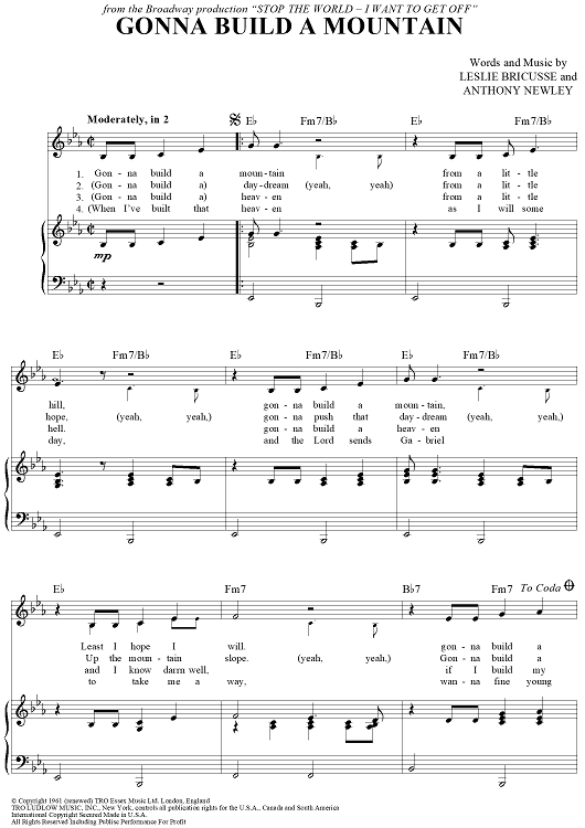 "Gonna Build A Mountain" Sheet Music by Leslie Bricusse