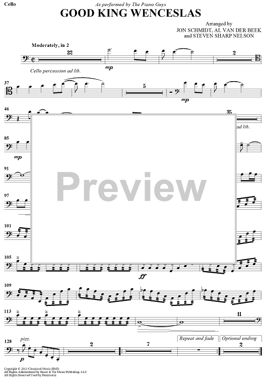 Digital Sheet Music for Good King Wenceslas by Traditional, Jon Schmidt, Al Van Der Beek, Steven Sharp Nelson, The Piano Guys scored for Cello and Piano; id:450030