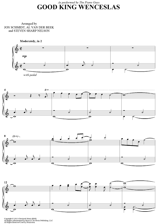"Good King Wenceslas" Sheet Music by The Piano Guys