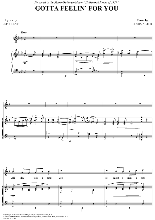 "Gotta Feelin' For You" Sheet Music by Louis Alter