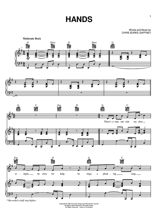 Digital Sheet Music for Hands by Chantal Kreviazuk, Chris Burke-Gaffney scored for Piano/Vocal/Chords; id:395765